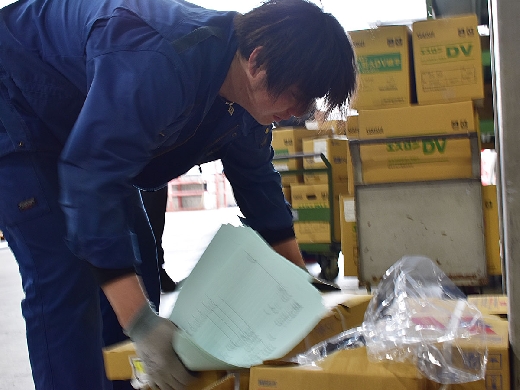 営業や事務とは日常的に連携しています。受発注は営業事務が担当していて、在庫の有無や納期の確認などを行ったうえで、物流側に指示が入ります。配送担当はその指示に基づいて動き、現場への納品を行います。